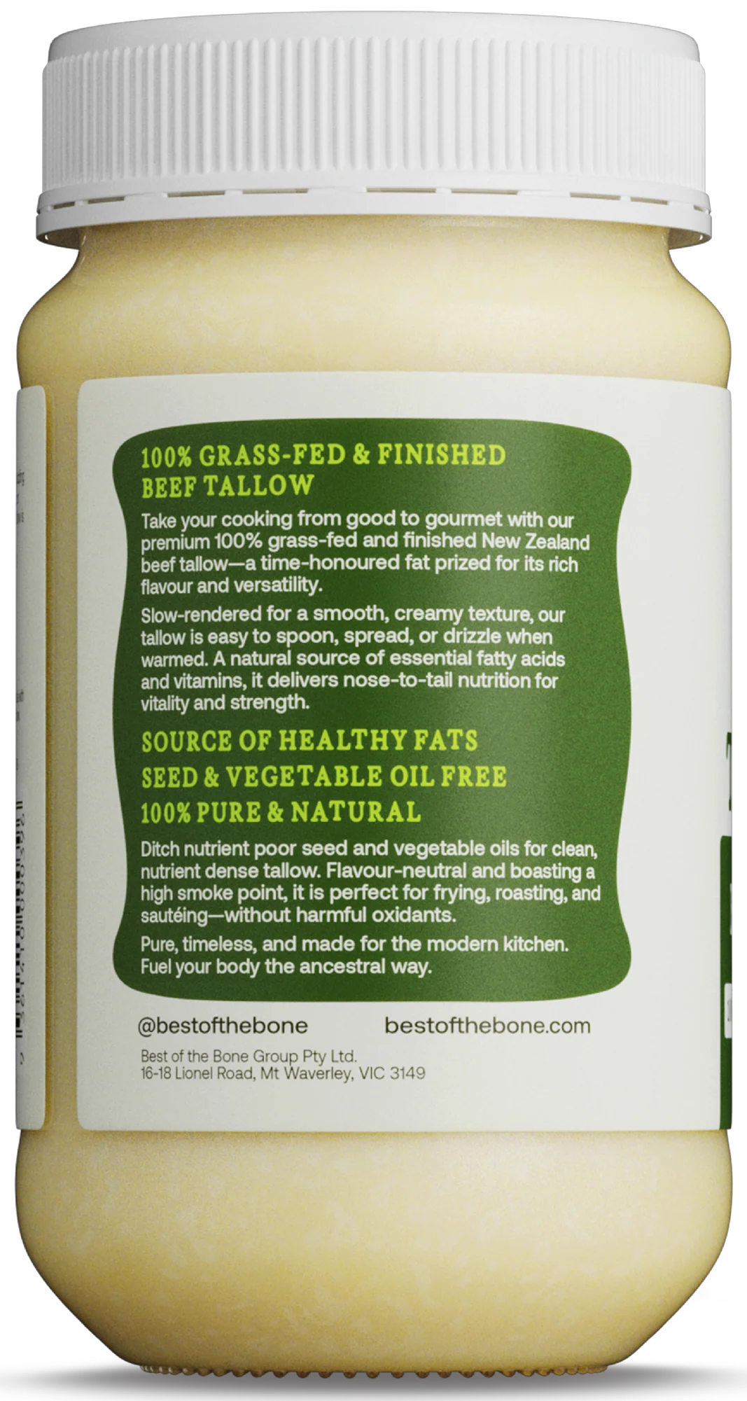 Upgrade your kitchen essentials with Best of the Bone Beef Tallow—a rich, natural alternative to highly processed seed and vegetable oils. Sourced from 100% pure Australian beef fat, this premium tallow is ideal for high-heat cooking without breaking down into harmful oxidants.