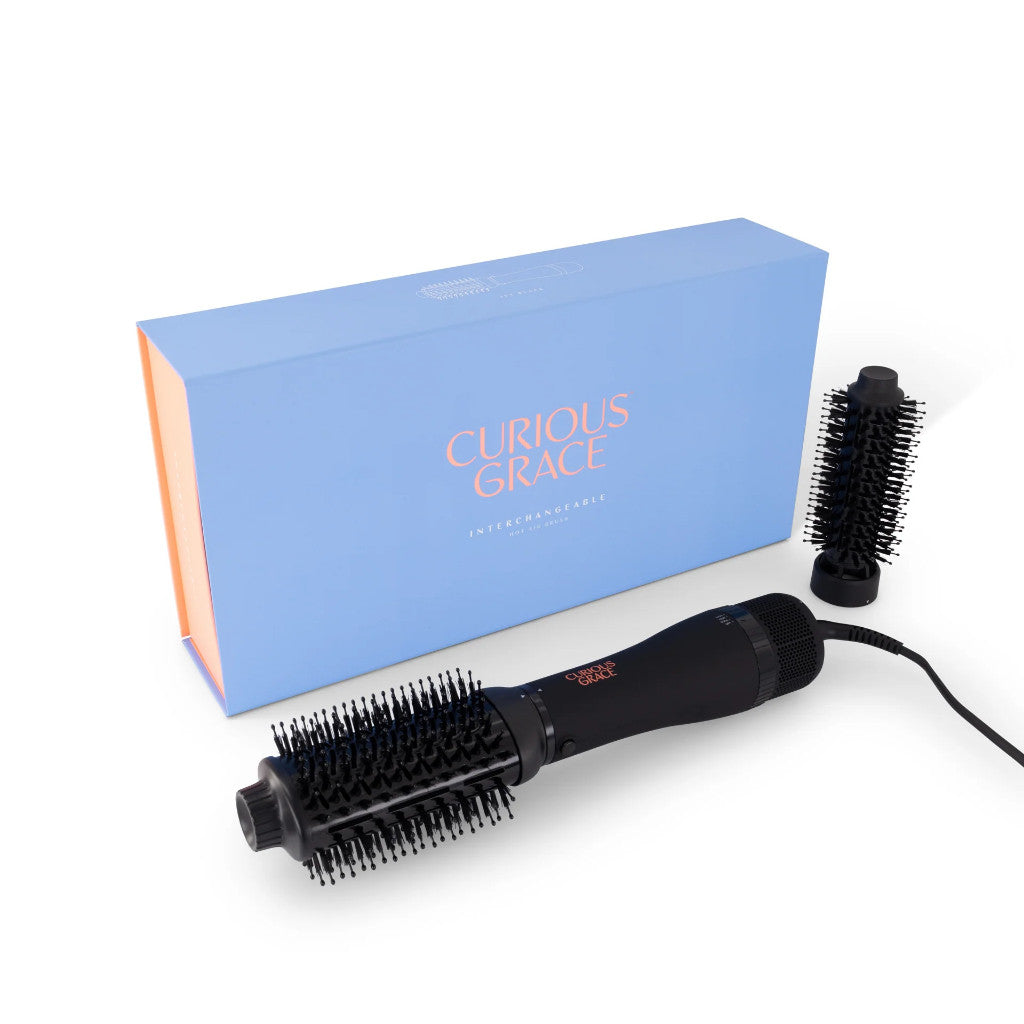 Transform your hair routine with effortless style and lasting shine — the Curious Grace Interchangeable Hot Air Brush is your new go-to for gorgeous hair!