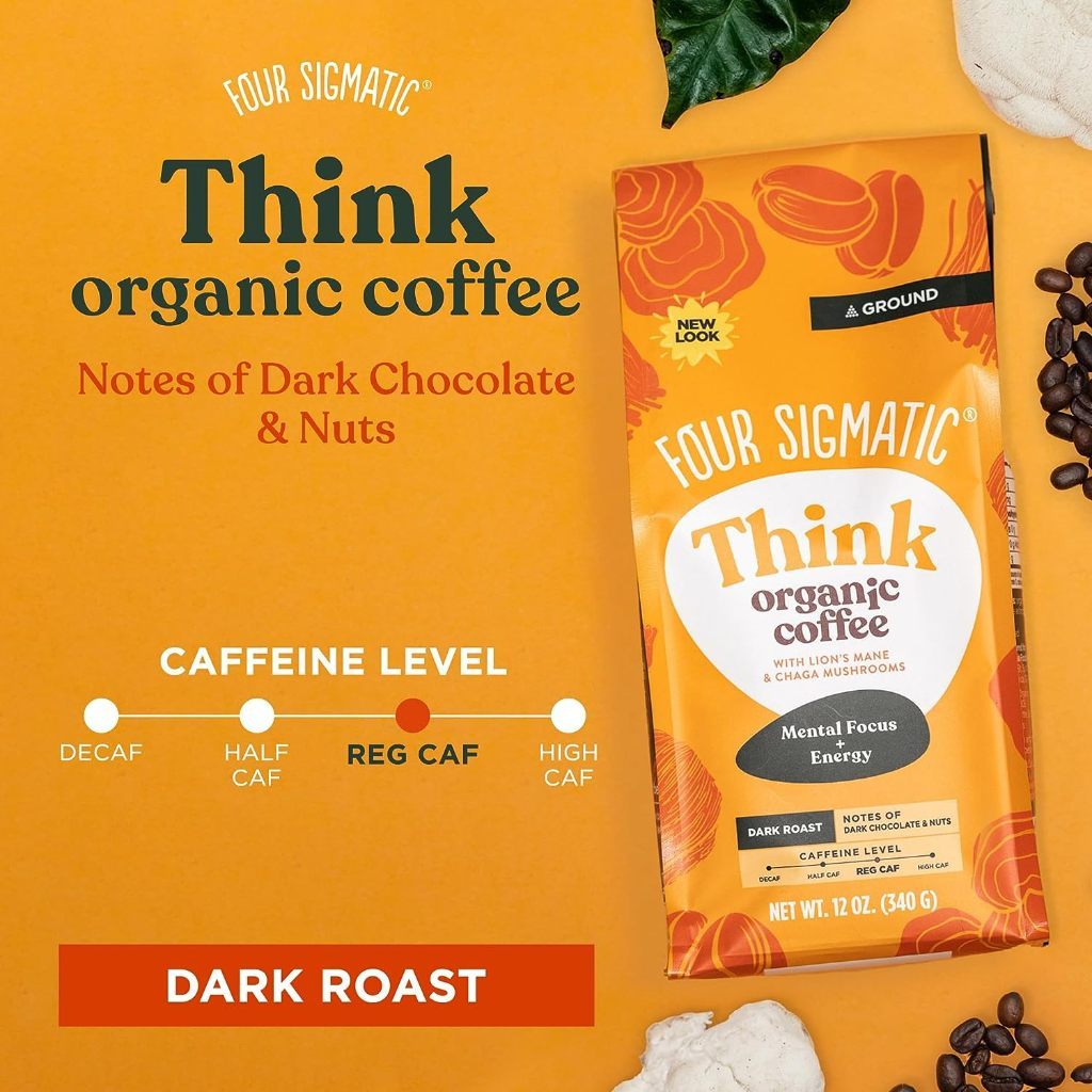 Upgrade your morning routine with Four Sigmatic Think Mushroom Coffee, the perfect blend of rich, organic coffee and brain-boosting superfoods. Infused with Lion’s Mane and Chaga mushrooms, this smooth, balanced brew enhances focus, mental clarity, and immune support—without the jitters or crashes of regular coffee.
