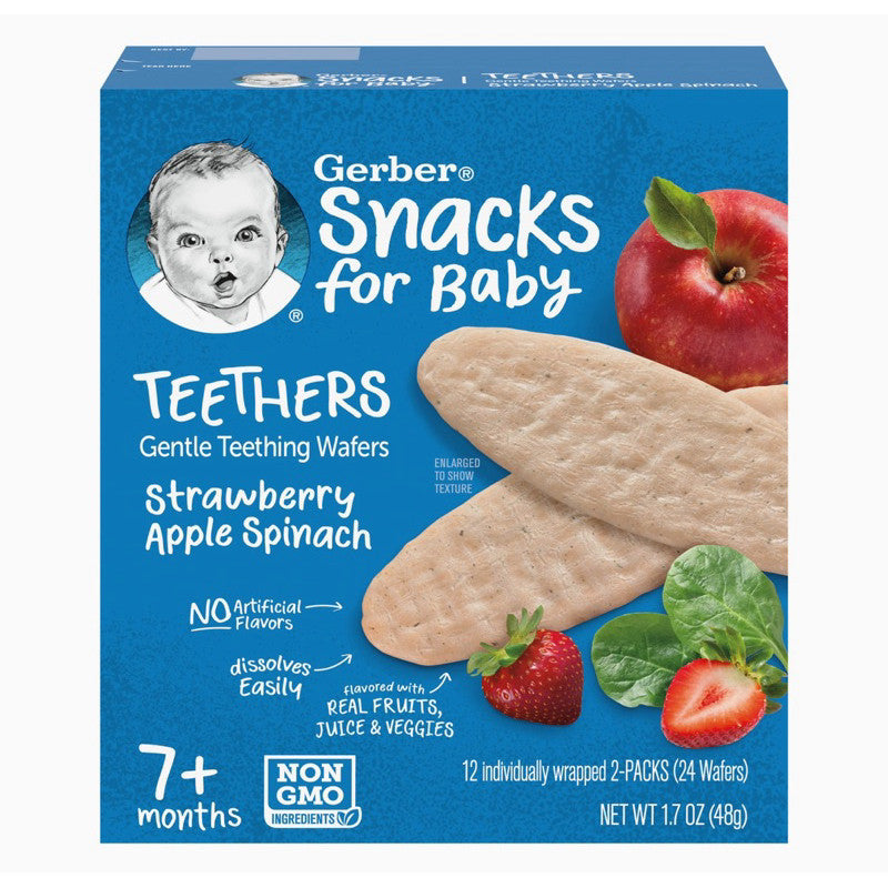 Make teething a little easier (and tastier) with Gerber Teething Snacks—gentle, dissolvable wafers designed for babies 7 months and up. With a soft texture that melts easily and an easy-to-grip shape, they help soothe sore gums while encouraging self-feeding.