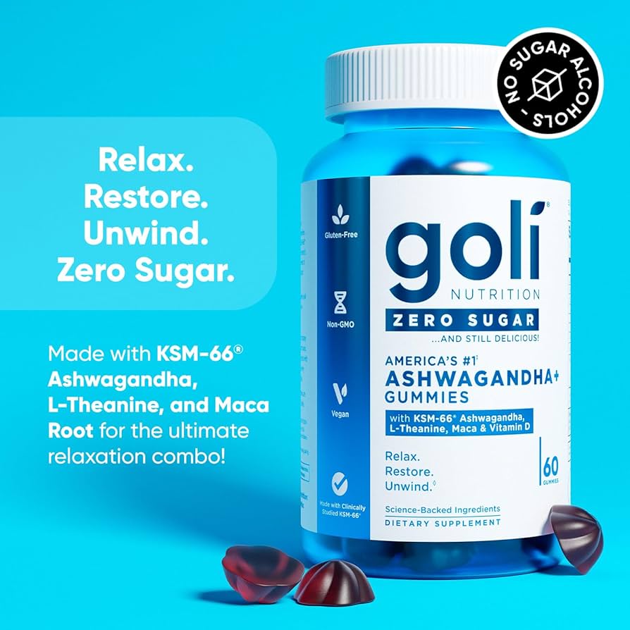 Elevate your daily wellness with Goli® Ashwa+ Zero Sugar Gummies, now formulated with a powerful blend of KSM-66® Ashwagandha Root Extract, L-Theanine, and Maca Root—all in a delicious, plant-based gummy with absolutely zero sugar.