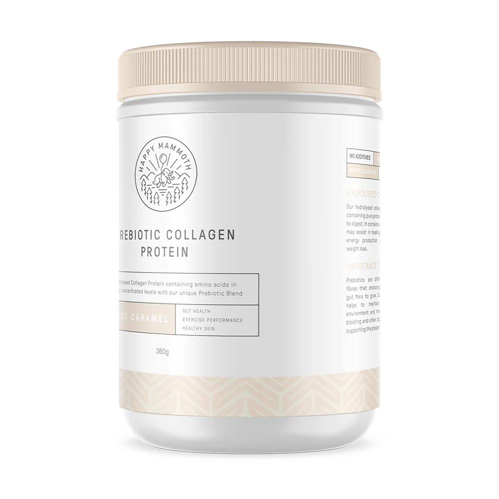 Support gut health, skin vitality, and overall wellness with Happy Mammoth Prebiotic Collagen Protein. This advanced formula combines high-quality hydrolyzed collagen peptides with plant-based prebiotics to nourish your body from within.