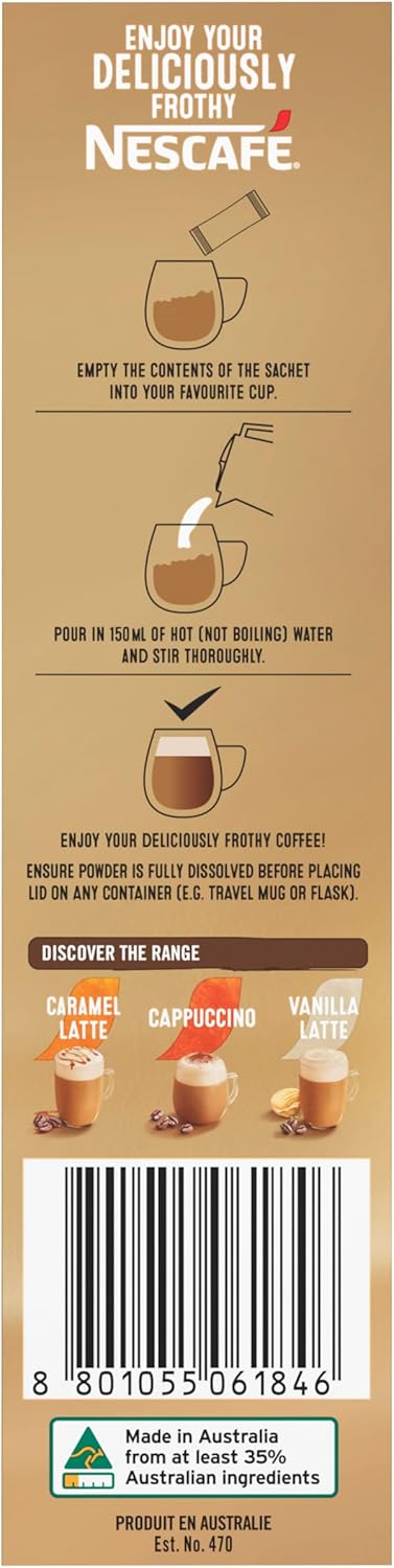 Experience the perfect blend of smooth coffee and the rich, nutty flavor of hazelnut with Nescafé Hazelnut Latte. Each sachet creates a creamy, frothy latte that combines the aromatic taste of Nescafé coffee with the indulgent sweetness of hazelnut, giving you café-style enjoyment at home.