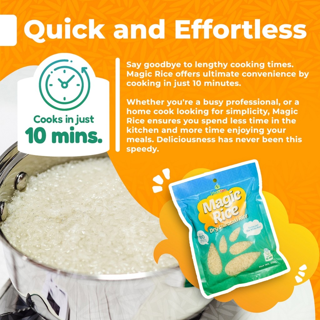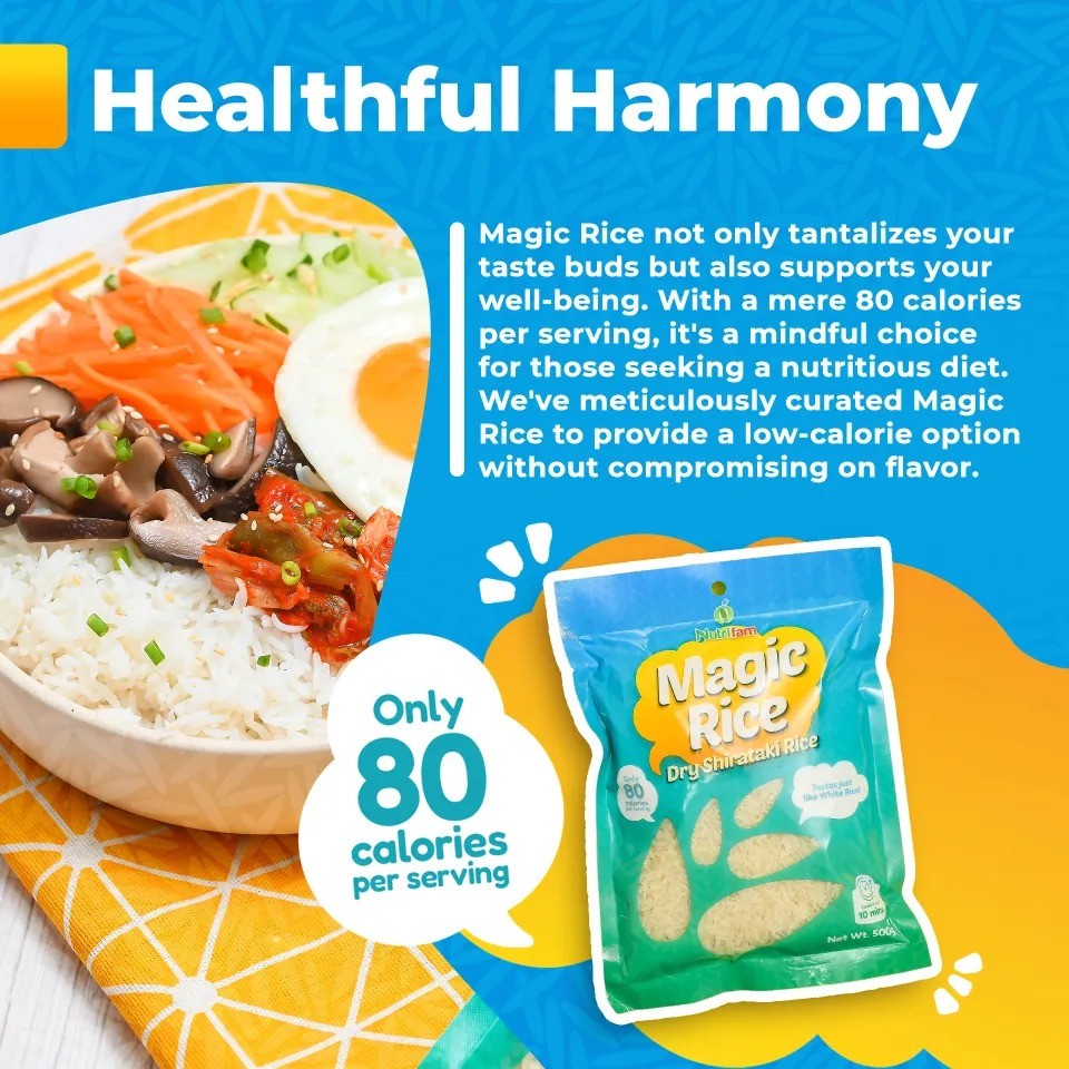 Enjoy all the comfort of white rice without the carbs or calories with Nutrifam Dry Shirataki Magic Rice. Made from the konjac plant, this keto-friendly and gluten-free rice substitute is low in calories and carbs—only 80 calories per serving—making it ideal for weight management and clean eating.