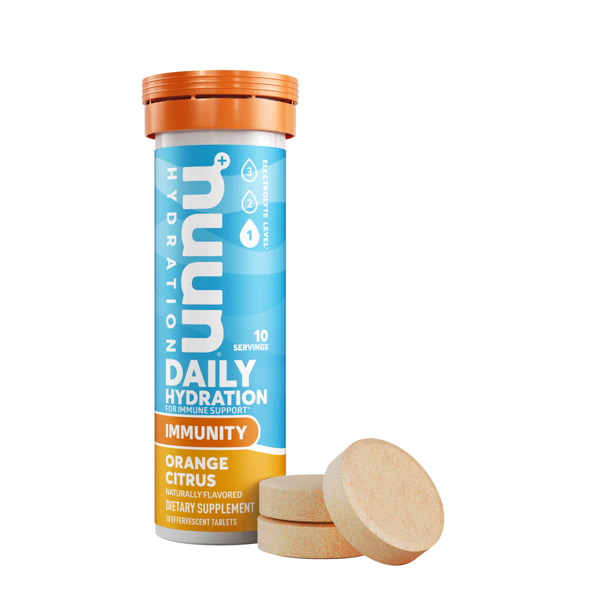 Stay refreshed and supported with Nuun Immunity, a daily hydration and immune-support formula packed into convenient, dissolvable tablets. Each serving delivers a boost of Vitamin C (200mg) plus Vitamins A, D & E, along with essential minerals and electrolytes to keep you hydrated and feeling your best.