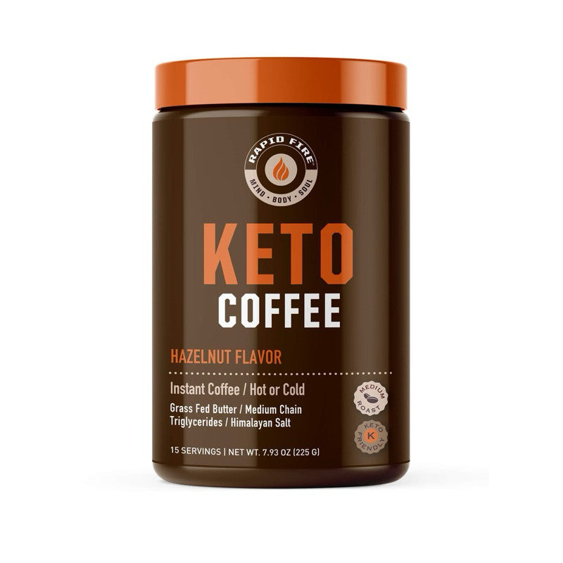 Fuel your day with a rich, creamy cup of Rapid Fire Hazelnut Keto Coffee—a delicious blend of premium coffee, coconut oil, MCTs, grass-fed butter, and a pinch of Himalayan salt. Crafted for keto and low-carb lifestyles, this satisfying beverage delivers healthy fats and energizing compounds to help you stay full, burn fat, and boost physical and mental performance.