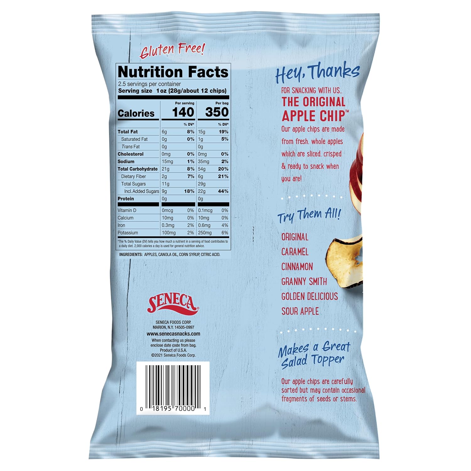 - Crisped using Seneca’s exclusive Vacu-Crisp® technology