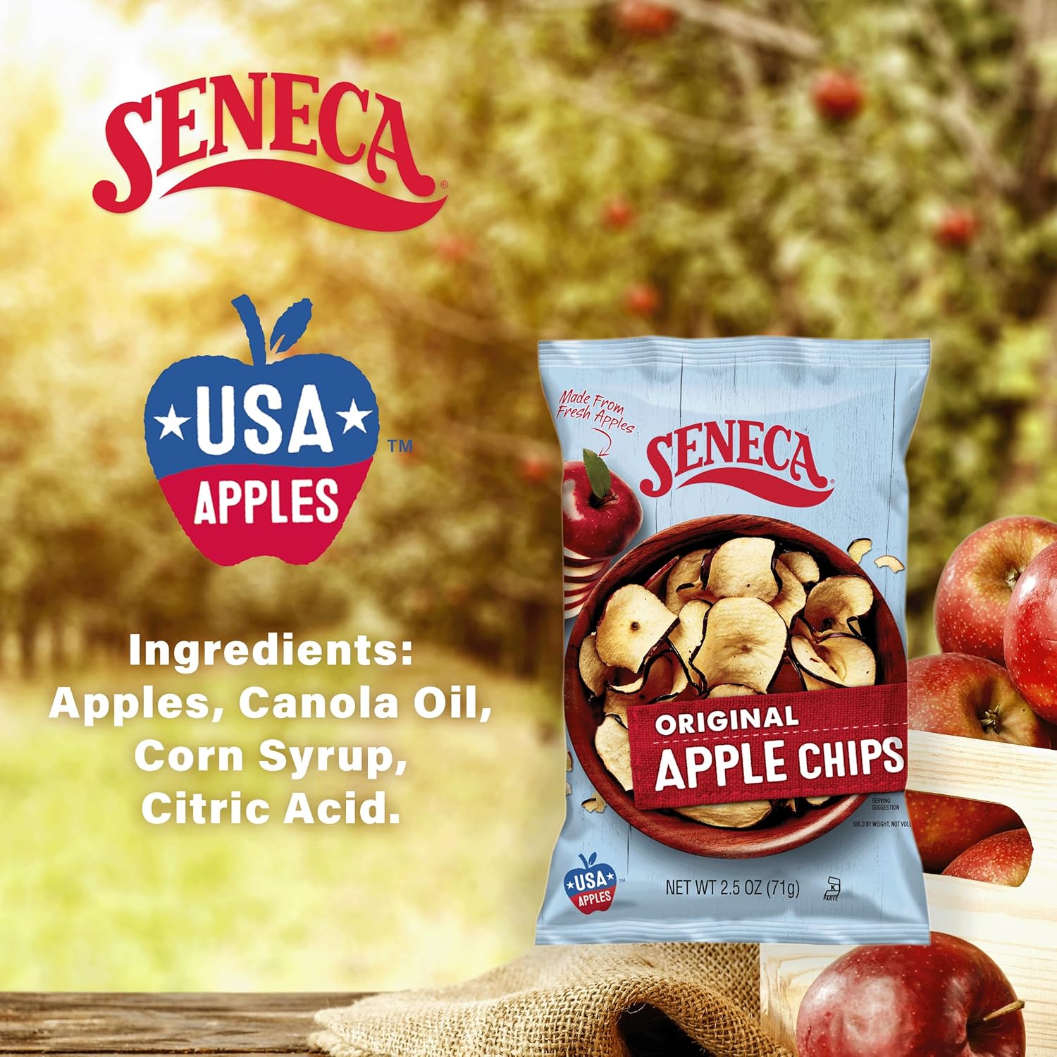 Crafted from apples 100% grown and harvested in Washington's Yakima Valley, Seneca Original Apple Chips are the perfect blend of nature’s best and small-batch craftsmanship. The rich volcanic soil, sunny days, and Cascade Mountain-fed irrigation create apples with exceptional flavor, color, and crunch.