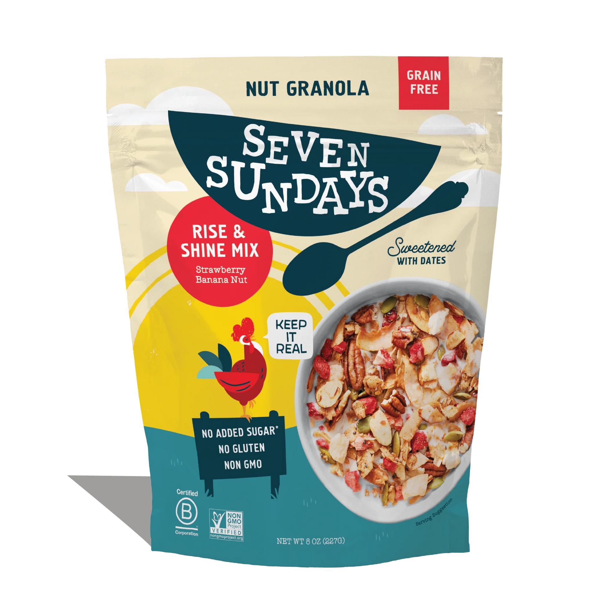 Part cereal, part trail mix, all delicious—Seven Sundays Rise & Shine Granola is a crunchy, fruity blend that makes every morning better. With just 5g net carbs per serving, this Keto-friendly mix is packed with real strawberries, banana, and nuts to keep you fueled and satisfied.